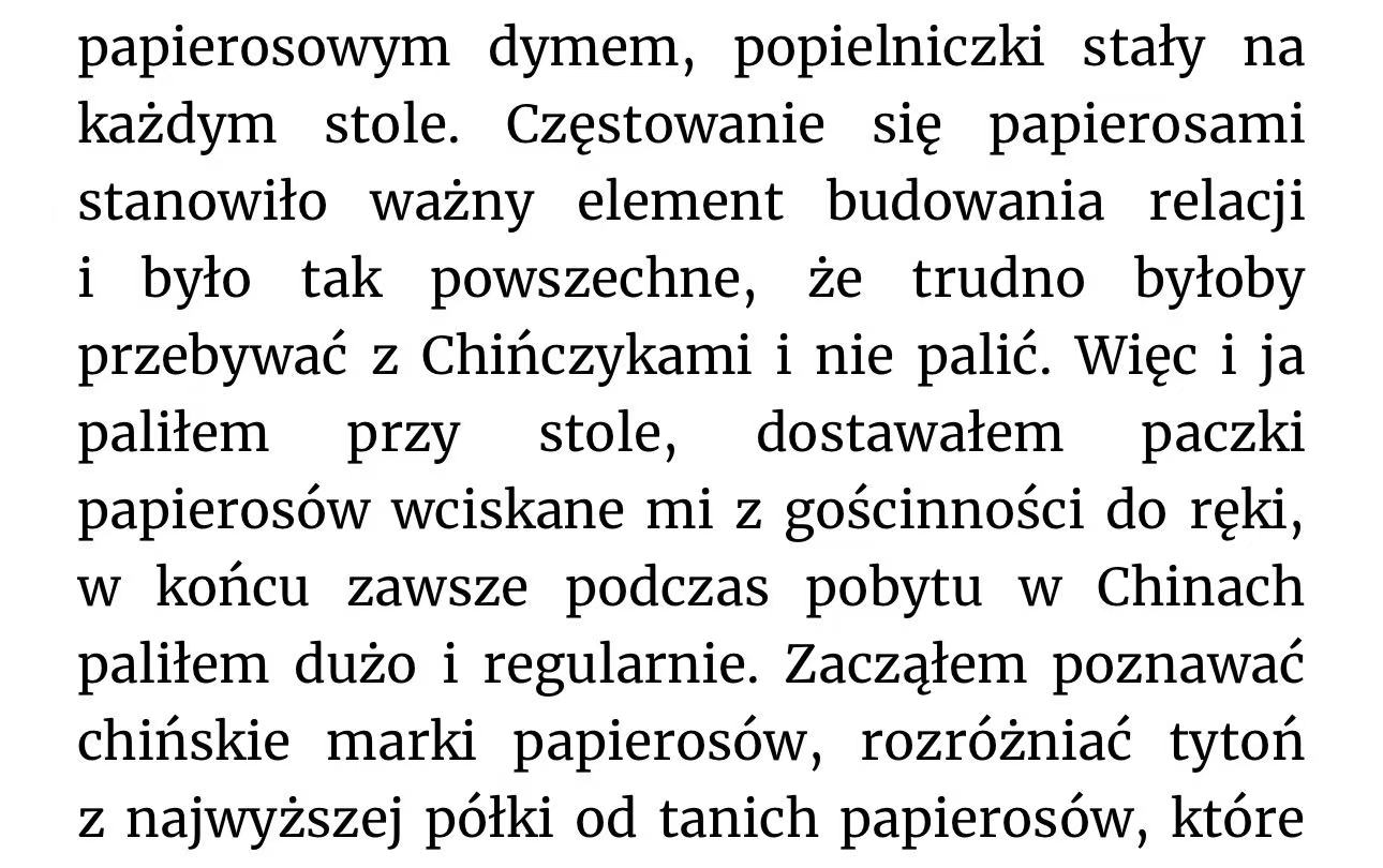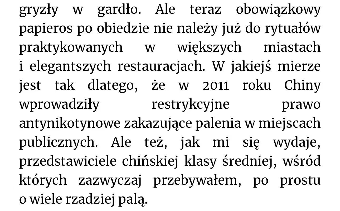 Jako osoba, która osiadła w Chinach południowo-zachodnich, obserwuję niektóre sprawy nieco inaczej. Przykładem może być wspomniany przez autora wprowadzony w 2011 roku zakaz palenia, do którego Chińczycy mieliby rzekomo się stosować.
